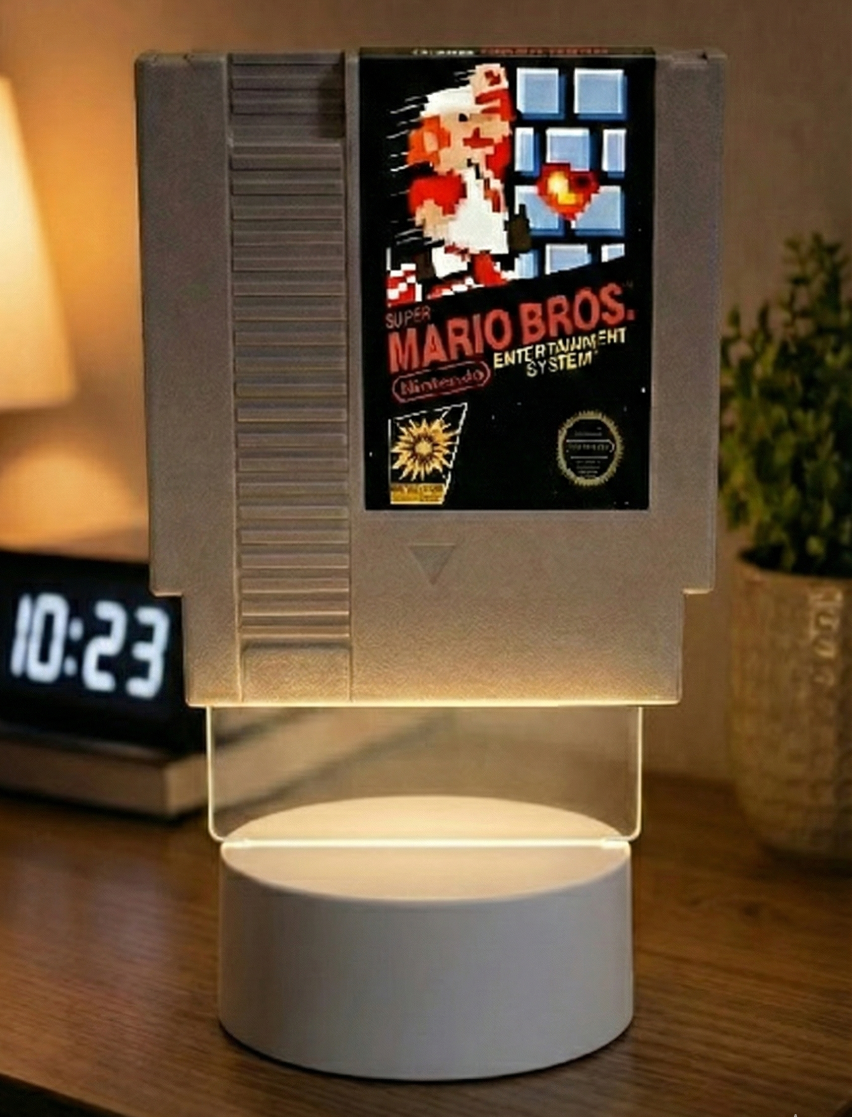 Nuestra Lámpara de Cartucho NES está fabricada a partir de tus cartuchos originales de la míticas consolas de NINTENDO y SEGA, transformados a mano en una pieza de iluminación única que combina nostalgia, diseño y personalidad. (También podemos fabricarla con cartuchos de otras consolas) Si no quieres usar tu cartucho, no te preocupes te enviaremos un cartucho genérico de la consola que nos pidas