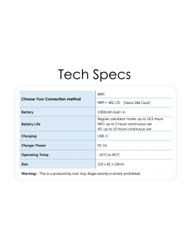 Autonomia di 5 ore in Wi-Fi e fino a 16 ore in modalità normale